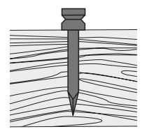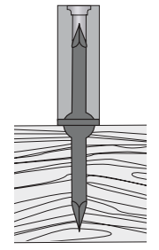 При ударе по навершию происходит детонация наполнителя, провоцирующая моментальный вход метиза в дерево.