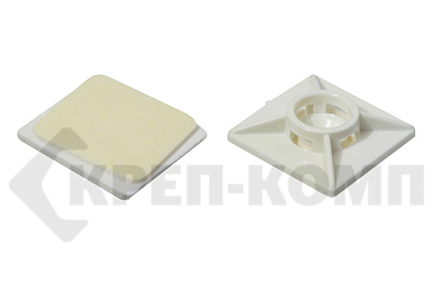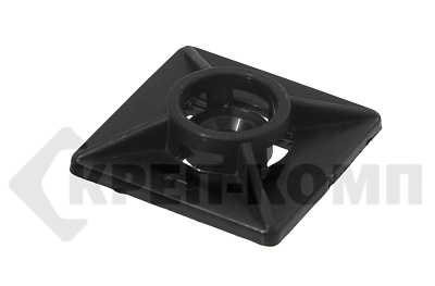 Площадки под хомут-стяжку представляют собой, квадратные площадки с двухсторонним скотчем предназначены для крепления хомутов-стяжек к гладким поверхностям внутри зданий и сооружений. Для обеспечения большей несущей способности или при использовании площадки вне зданий необходимо воспользоваться саморезом, для чего в площадке предусмотрено отверстие. Прямоугольная (усиленная) площадка может использоваться только в комплекте с саморезом и расчитана на хомуты-стяжки шириной до 8 мм.