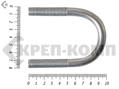 Хомут U-образный представляет собой изогнутый по определенному диаметру трубы стержень, концы которого снабжены метрической резьбой. Предназначен для фиксации труб при монтаже коммуникационных сетей. С его помощью можно производить эффективное закрепление к рабочему основанию стержней, электротехнического силового кабеля и прочих изделий круглого сечения. Жесткая фиксация реализуется за счет затягивания гаек на резьбовых концах стержня.