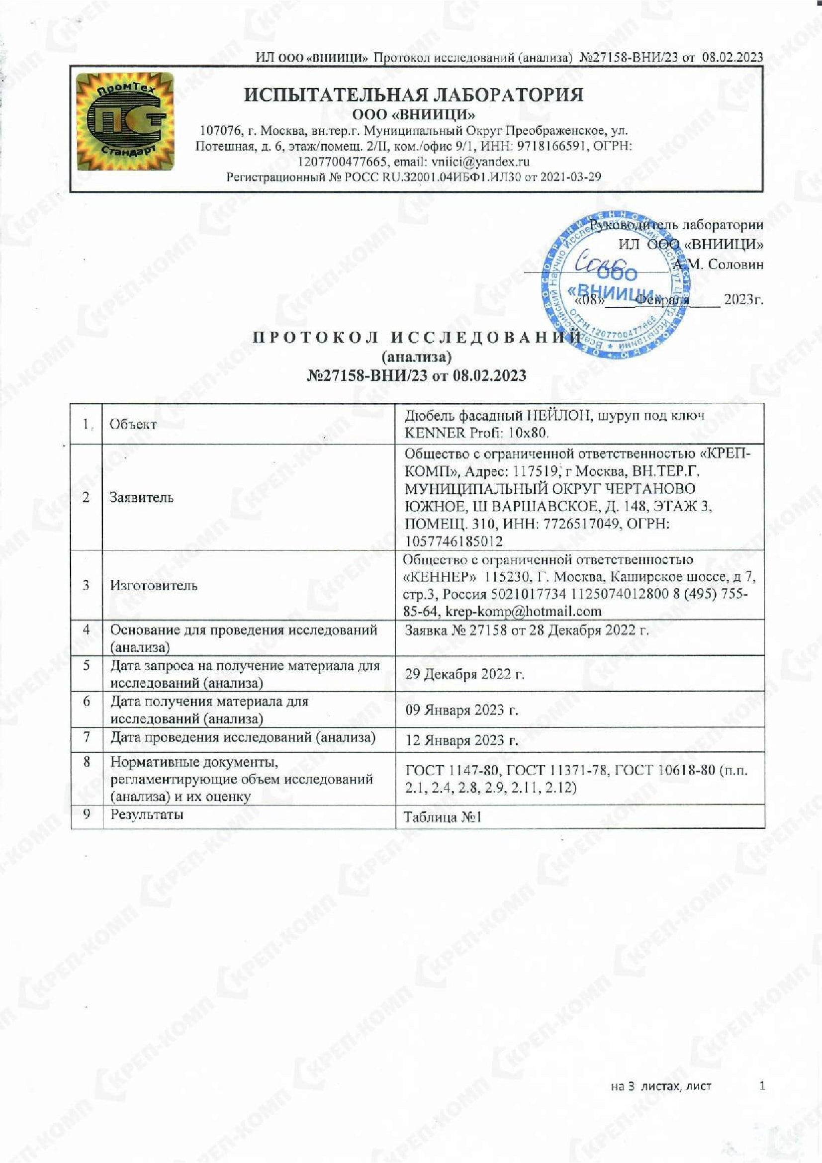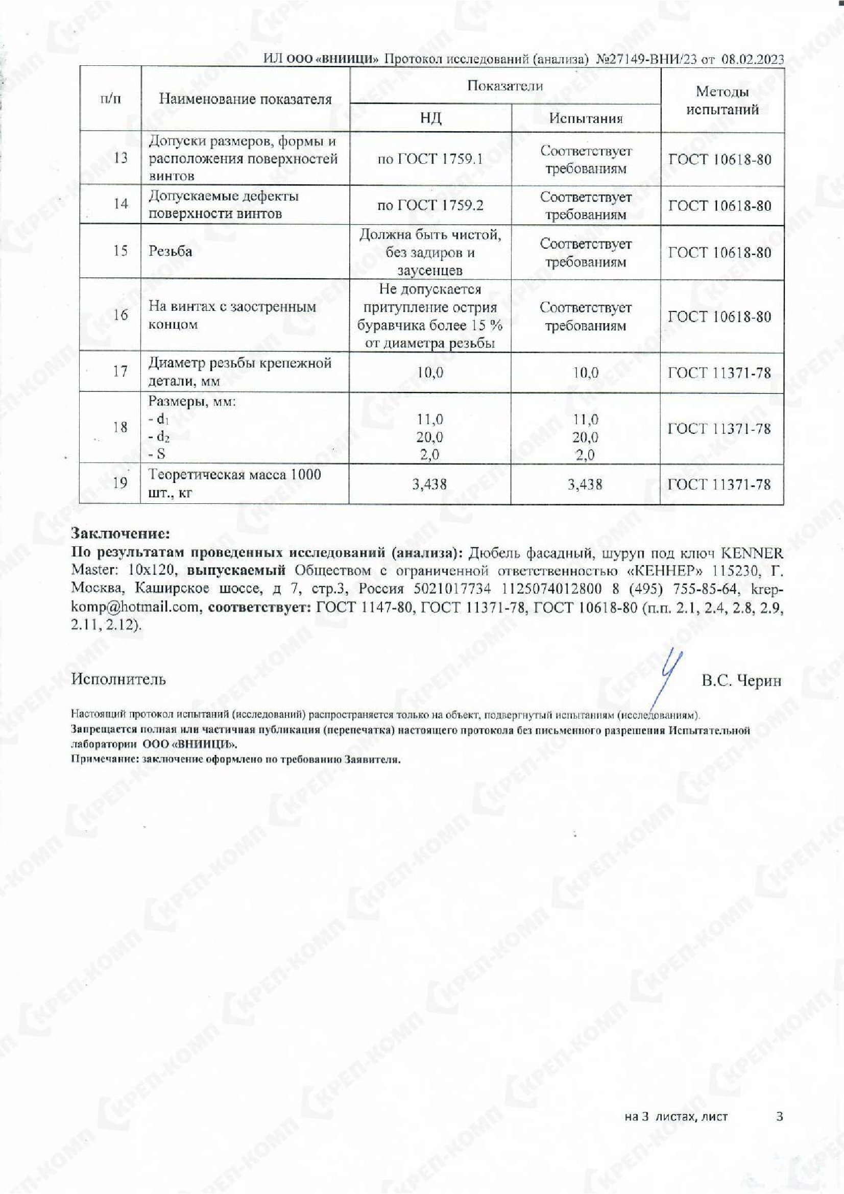 • Скачать Дюбель фасадный, шуруп под ключ KENNER Master 10х120
