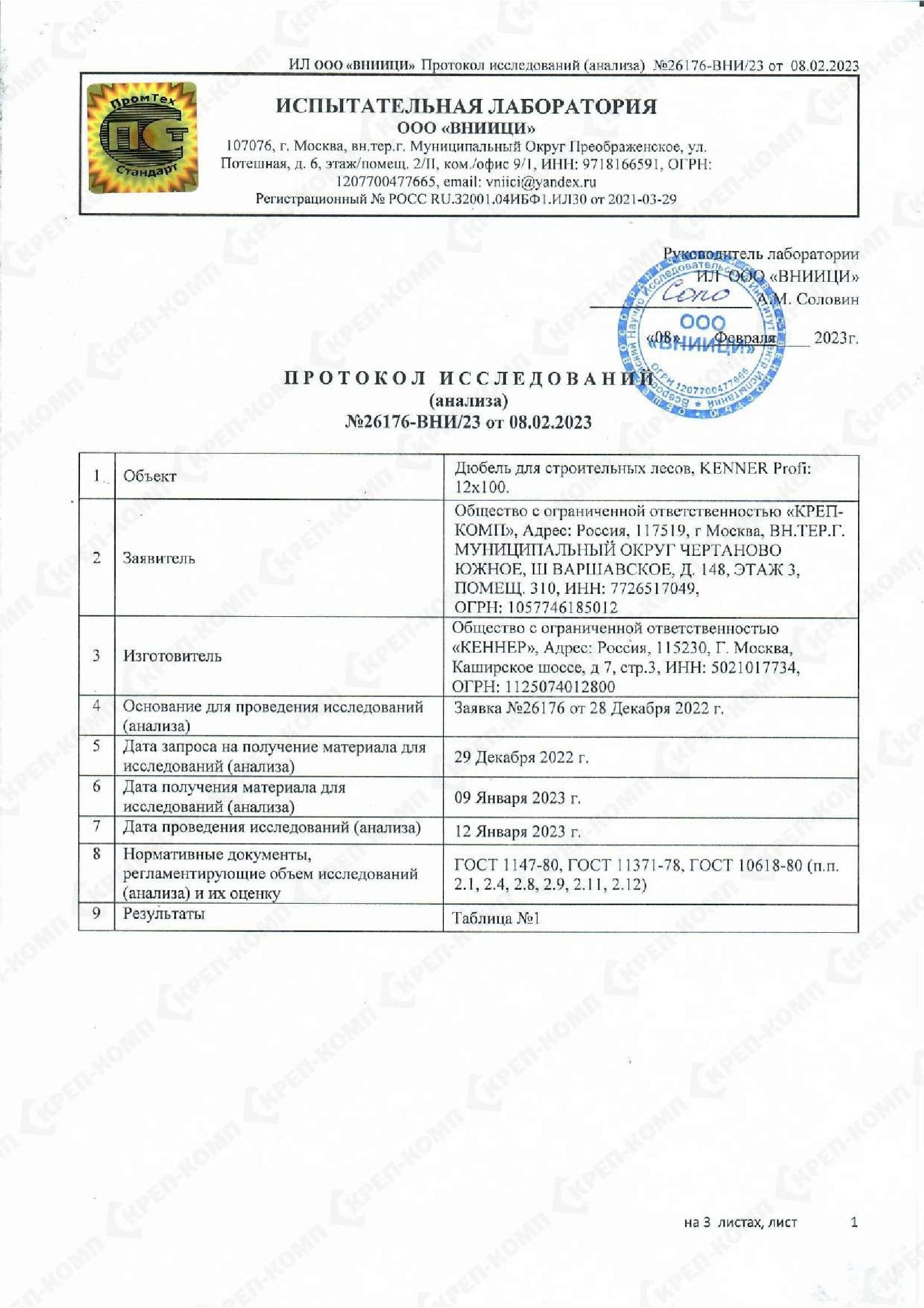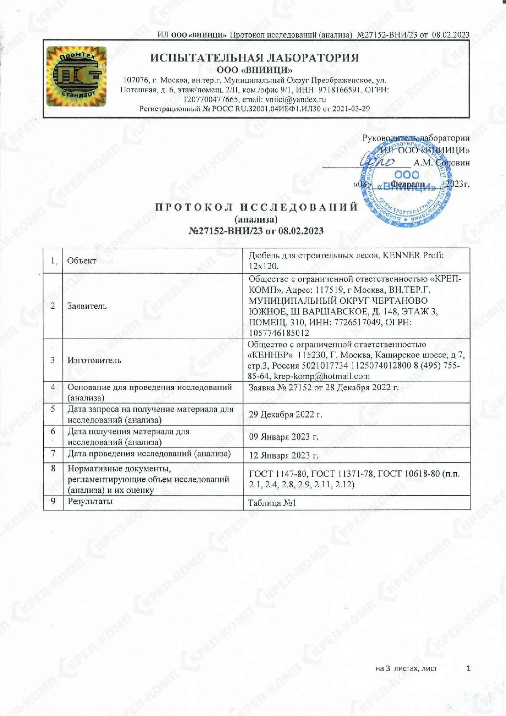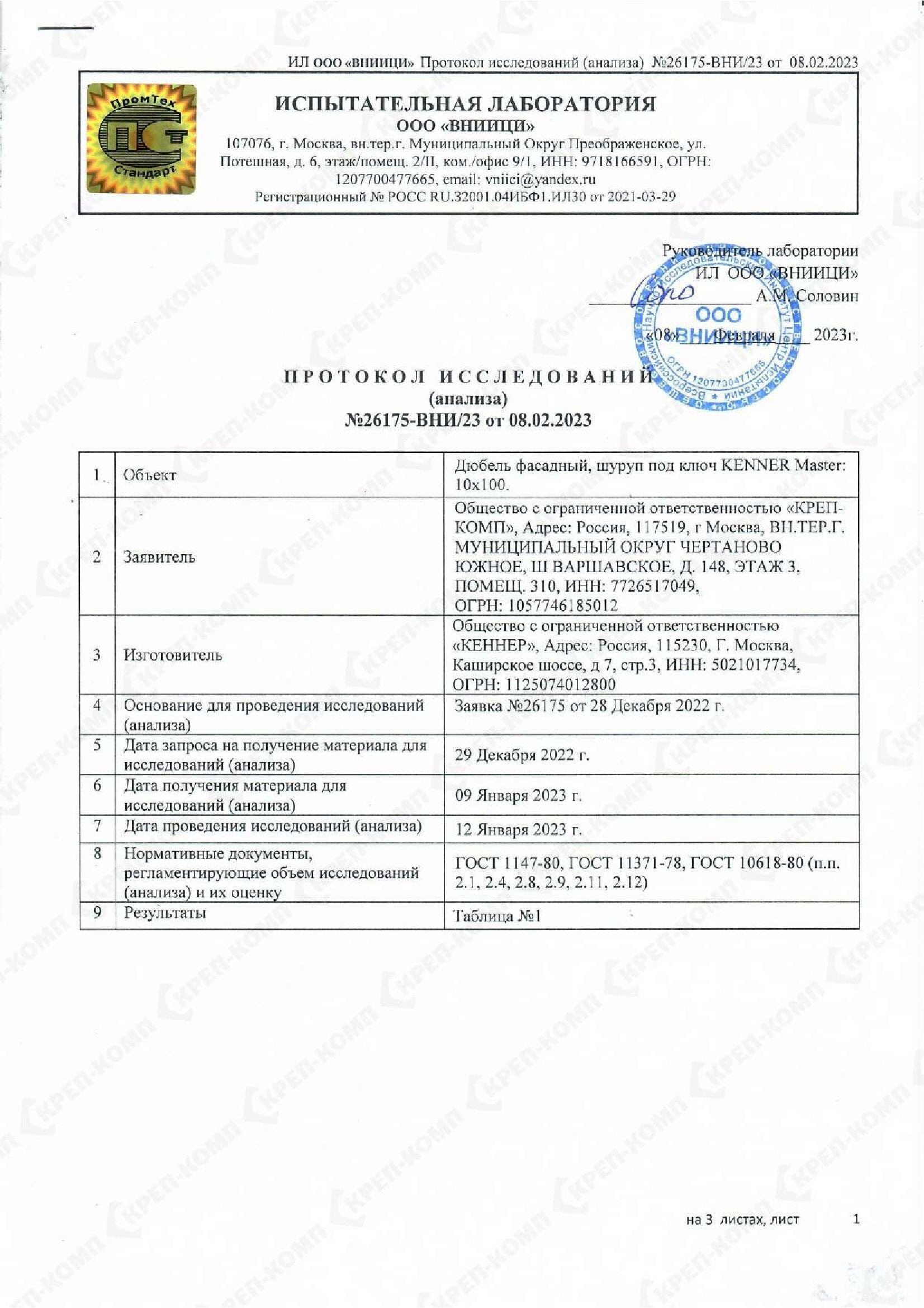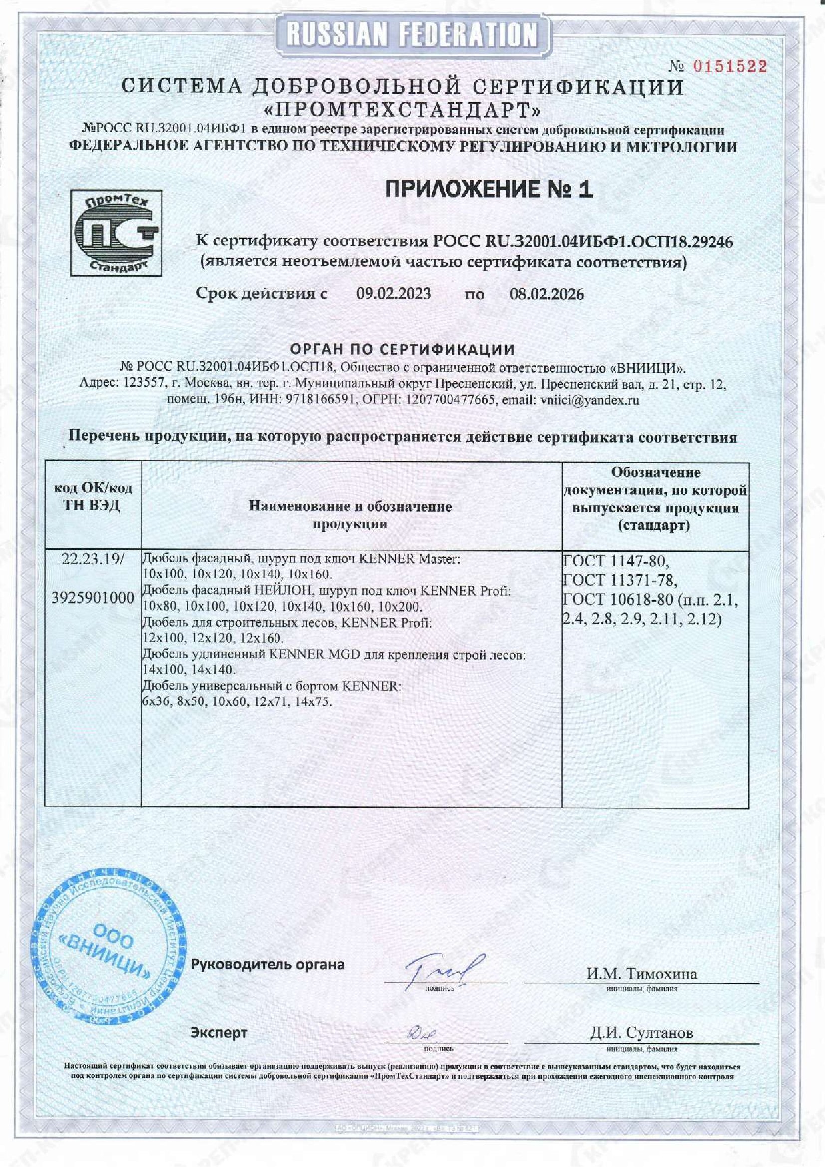 • Скачать Сертификат соответствия на дюбеля кровельные