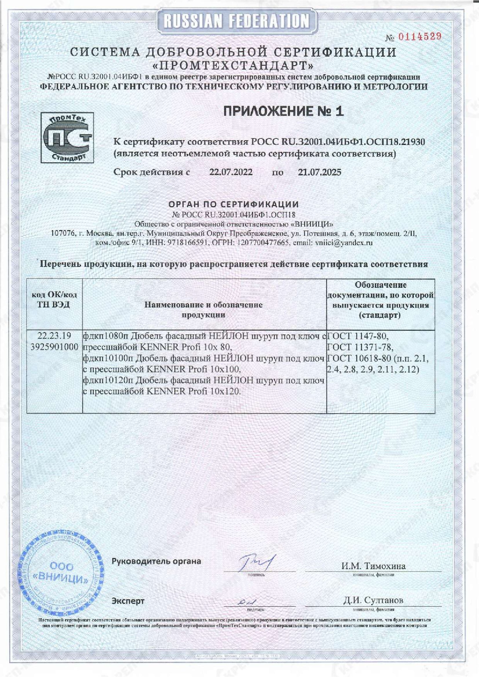 • Сертификат соответствия на дюбеля кровельные