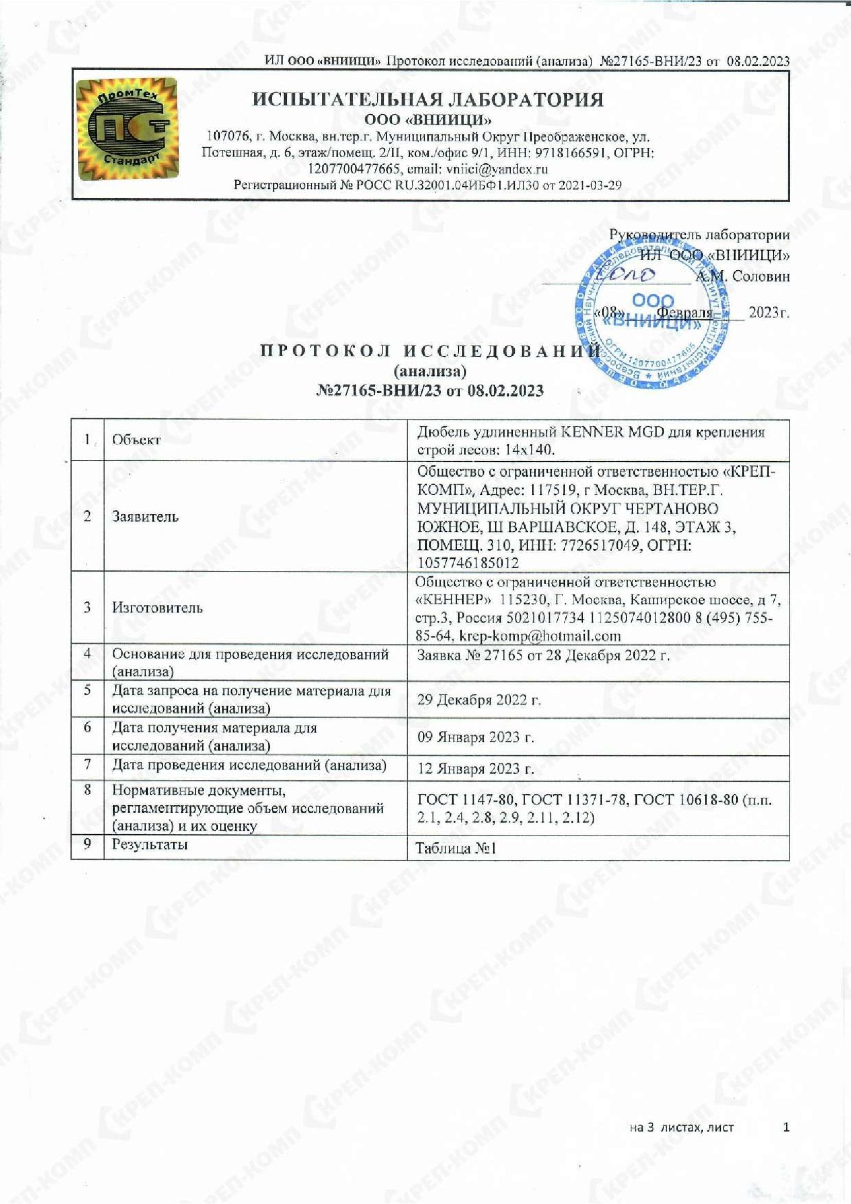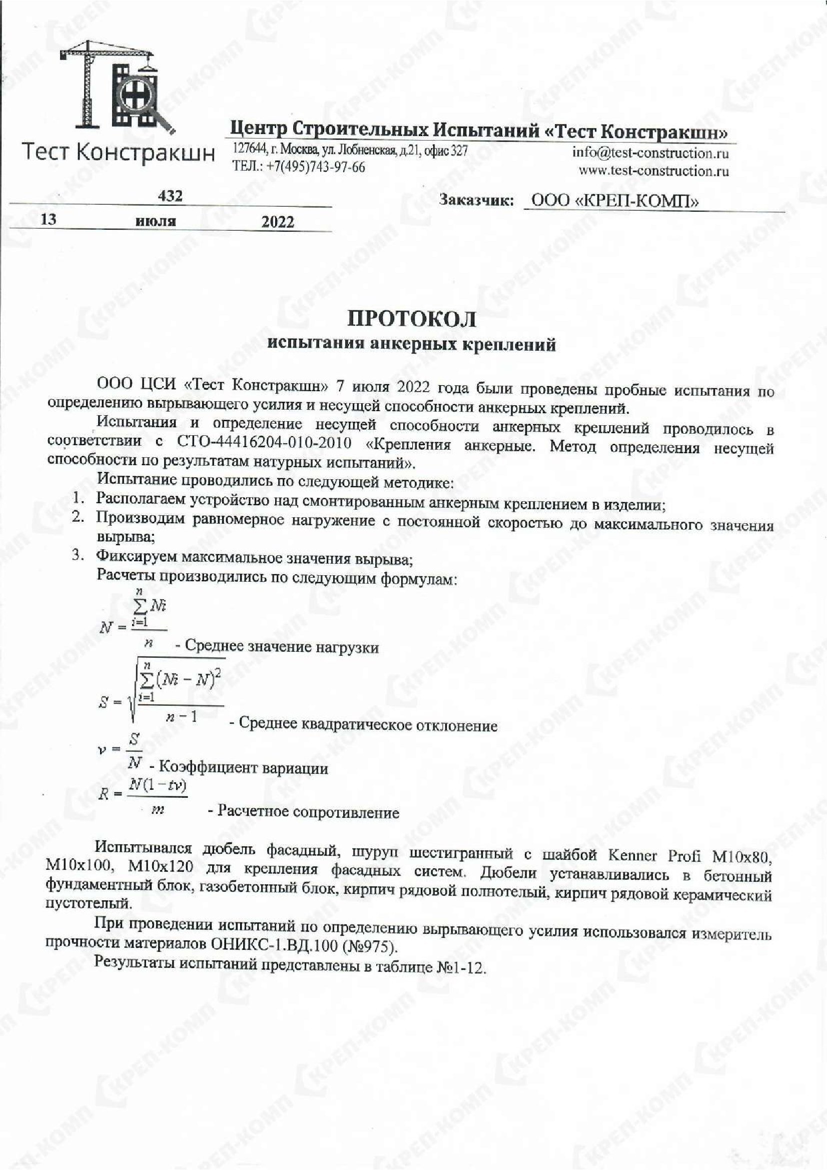 • Скачать Протокол испытания анкерных креплений